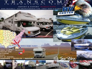 Nuestra empresa Chilena Transcom International Ltda. con sucursal en U.S.A. posee personal que radica en Florida, buscando los mejores precios y calidad en Florida, Georgia, South Carolina, Alabama, Tennesse para america latina , importamos por encargo o venta directa todo tipo de Vehiculos Recreacionales , casas rodantes , campers , Pop Up , Motorhome, Botes, lanchas , Jet Sky . carros de golf etc. Tenemos 16 años de experiencia, sabemos por nuestra vivencias que unas vacaciones en casa rodante son inolvidables para la familia.
